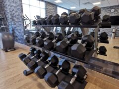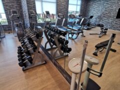 As for cardio equipment, there’s a Peloton bike, three treadmills, two cross-trainers and a stationary bike.