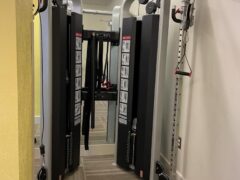As for cardio equipment, there’s a stationary bike, a cross-trainer and two treadmills.