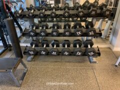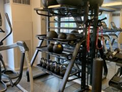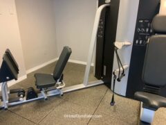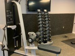 There’s a solid selection of dumbbells (up to 50 lbs/22 kgs) and a few machines covering leg-presses, chest presses, shoulder presses and lat pull-downs.