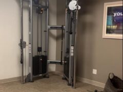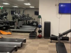 In terms of cardio equipment, there’re three treadmills, two cross-trainers and two stationary bikes.