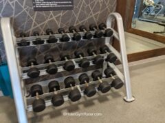 In terms of cardio equipment, there’re two treadmills, two cross-trainers and a stationary bike.