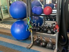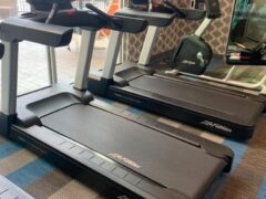 In terms of cardio equipment, there’s a stationary bike, three treadmills and a cross-trainer.