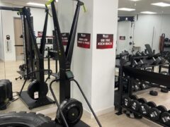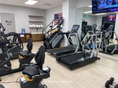 The cardio section includes treadmills, stationary bikes, cross-trainers, ski ergs and there’s even a stair-master.