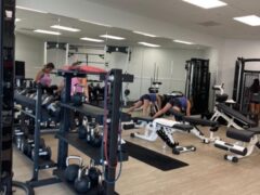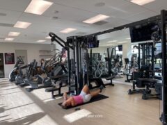 There’re two squat racks, a tire-flipping machine, two cable machines (one with a built-in setup allowing for seated rows, lat-pull downs, etc.), a solid selection of dumbbells and kettlebells and a handful of adjustable benches – including the decline option.