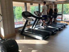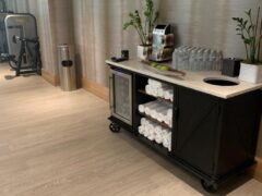 A really nice hotel gym that has plenty of equipment and offer reusable headphones. They also have Peloton bikes connected to the internet. Along with the rest of the hotel, you feel like you are in a very high-end setting.