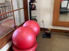As for cardio equipment, there’s a stationary bike, a Peloton bike, a cross-trainer and two treadmills.