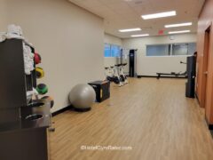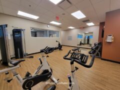 In terms of cardio equipment, there’s a pretty extensive selection: four treadmills, three cross-trainers, two spinning-like bikes, a stationary bike, a Peloton bike (which didn’t work) and a rowing machine.