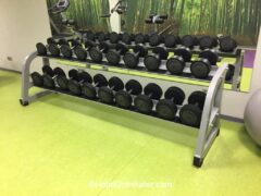 Dumbbells up until 22kg and cardio machines (bike, treadmill and cross trainer).