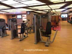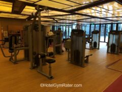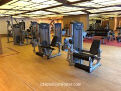 The hotel gym is equipped with the most common weight-based machines like legs curls (front and back) as well as chest press and lateral pull-down machines.