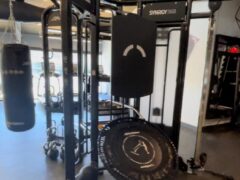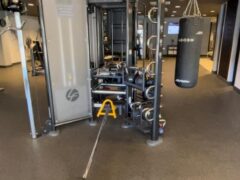 There’s a dual cable machine, a Smith machine, a chest press machine and a lat pull-down machine as well.