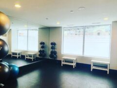 There’s a separate area with big mirrors suitable for stretching, etc. with exercises balls, medicine balls and step benches.