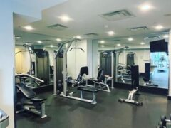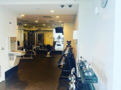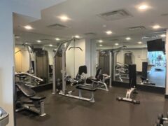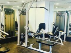 As for cardio equipment, there’re stationary bikes, cross-trainers and treadmills.