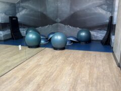 There’s a separate area with Bosu balls, exercise balls and exercise mats as well as medicine balls nearby.