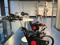 In terms of cardio equipment, there’re three treadmills, two spinning-like bikes, a stationary bike and two cross-trainers.