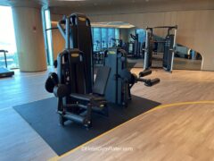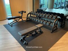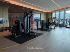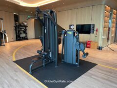 I was somewhat disappointed that the range of dumbbells ended at 50 lbs/22 kgs, but then again, it’s pretty basic for hotel gyms. However, the cable machine should’ve had a bigger selection of handles! It would’ve been nice with a squat rack/bench press setup, but then again, it’s a hotel gym.