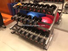 On a positive note, there’s a fully functional cable machine with a great range of handles, etc. and dumbbells up until around 44 lbs/20kgs.