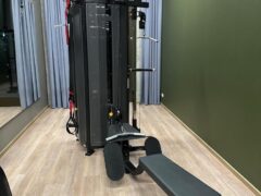 There’s a multi-gym machine making it possible to do seated rows as well as lat pull-downs and there’s also a single cable option with a nice selection of attachments.