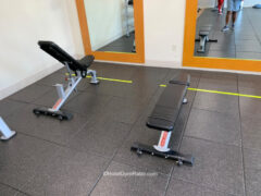 There’re dumbbells from 5 to 50 lbs/2 to 22 kgs as well as two adjustable benches.