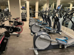 There’s an extensive selection of cardio equipment with more than 10 treadmills, five cross-trainers, two stationary bikes, two spinning-like bikes, two stair-masters, two rowing machines and even two Peloton bikes!