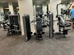 There’re several pin-operated machines – for example, leg extensions, shoulder presses and lat pull-downs.
