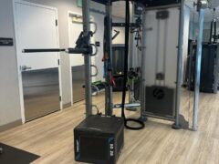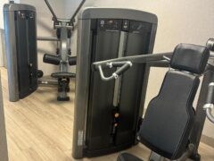 Pin-operated machines include lat pull-downs, shoulder presses, chest presses, leg extensions and legs curls and there’s a dual cable machine as well.