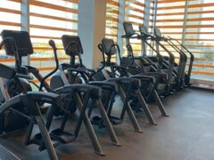 As for cardio equipment, there’re several treadmills, cross-trainers, stationary bikes and stair masters.