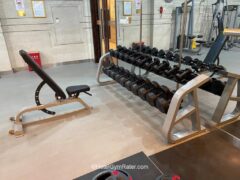 I was positively surprised to see they had a squat rack, but it would’ve been nice if there’d been a barbell bench press option, a dual cable machine and maybe a few sets of heavier dumbbells.