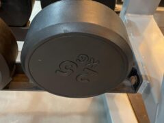 Finally, there’s a fairly stable squat rack with a nice selection of weight plates.