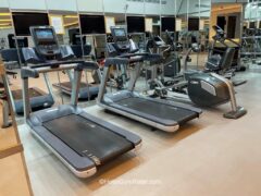 In terms of cardio equipment, there’s a rowing machine, a stair-master, a cross-trainer, two stationary bikes and two treadmills.