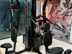There’s a multi-gym in the corner making it possible to do shoulder presses, chest presses, leg extensions and lat pull-downs. There’s also a single cable machine.