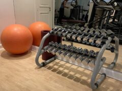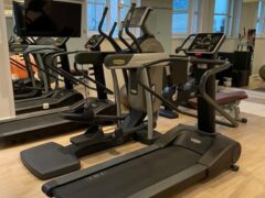 In terms of cardio equipment, there’s a stationary bike, a cross-trainer and two treadmills.