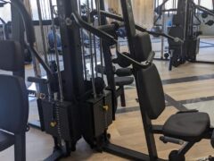 There’re pin-operated machines covering exercises such as shoulder presses, lat pull-downs, lying leg curls, chest presses, rear delt flys, etc.