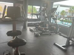 In terms of cardio equipment, there’s one treadmill, two cross-trainers and three stationary bikes.