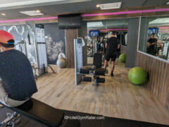In terms of pin-operated machines, there’s a leg extension, chest press, chest flys and a cable machine.