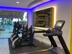 As for cardio equipment, there’s a handful of treadmills as well as cross-trainers, a stair-master, a pair of stationary bikes as well as spinning bikes and even a rowing machine.