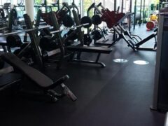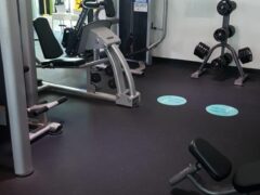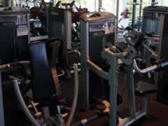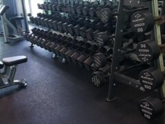 There’s a great selection of dumbbells (4 to 120 lbs/2 to 55 kgs), kettlebells and barbells (22 to 110 lbs/10 to 50 kgs) as well.