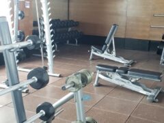 There’s a solid selection of barbells and dumbbells as well as adjustable benches.