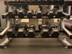 Dumbbells go up to 44 lbs/20 kgs and there’s a pair of adjustable benches.