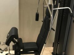 You can do lat pull-downs, seated rows, chest presses, chest flys as well as leg extensions on the multi-gym machine and with the cable attachment at the bottom you can do additional exercises.