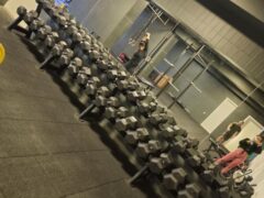 There’s a huge selection of dumbbells as well as kettlebells including adjustable benches.