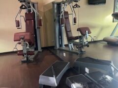 There’s a multi-gym in the corner making it possible to do exercises like leg curls, biceps curls, lat pull-downs, chest flys, etc.