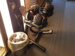 There’re also a few dumbbells including an adjustable set as well as an adjustable bench.