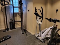 As for cardio, there’s a cross-trainer, a spinning-like bike and a treadmill.