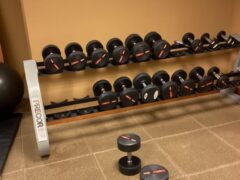 As for cardio equipment, there’re five treadmills, four cross-trainers, and two stationary bikes.