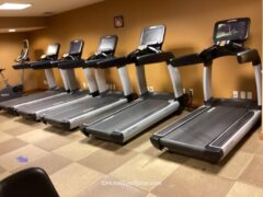 There’s also a cable machine as well as machines for chest presses, shoulder presses, leg presses, leg extensions, leg curls, lat pull-downs and ab crunches.
