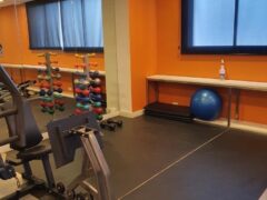 There’s also a small selection of dumbbells, an exercise ball and a few exercise mats.