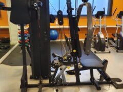 There’s a multi gym making it possible to do leg extensions, lat pull-downs, chest presses and seated legs presses as well as dips/leg raises.
