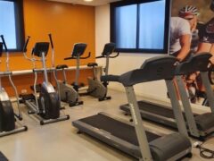There’re two cross-trainers, two treadmills and two stationary bikes.