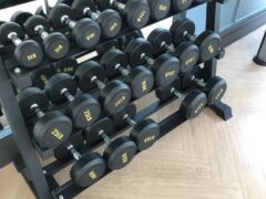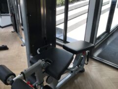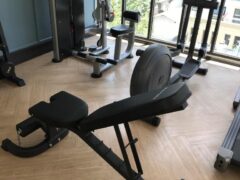 There’s a cable machine (including pull-up handles), a combined ab/back extension machine as well as leg extension/curl machine. Dumbbells range from 4 to 48 lbs/2 to 22 kgs and there’s an adjustable bench as well.