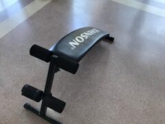 There’s a sit-up bench and a flat bench as well as an exercise mat.